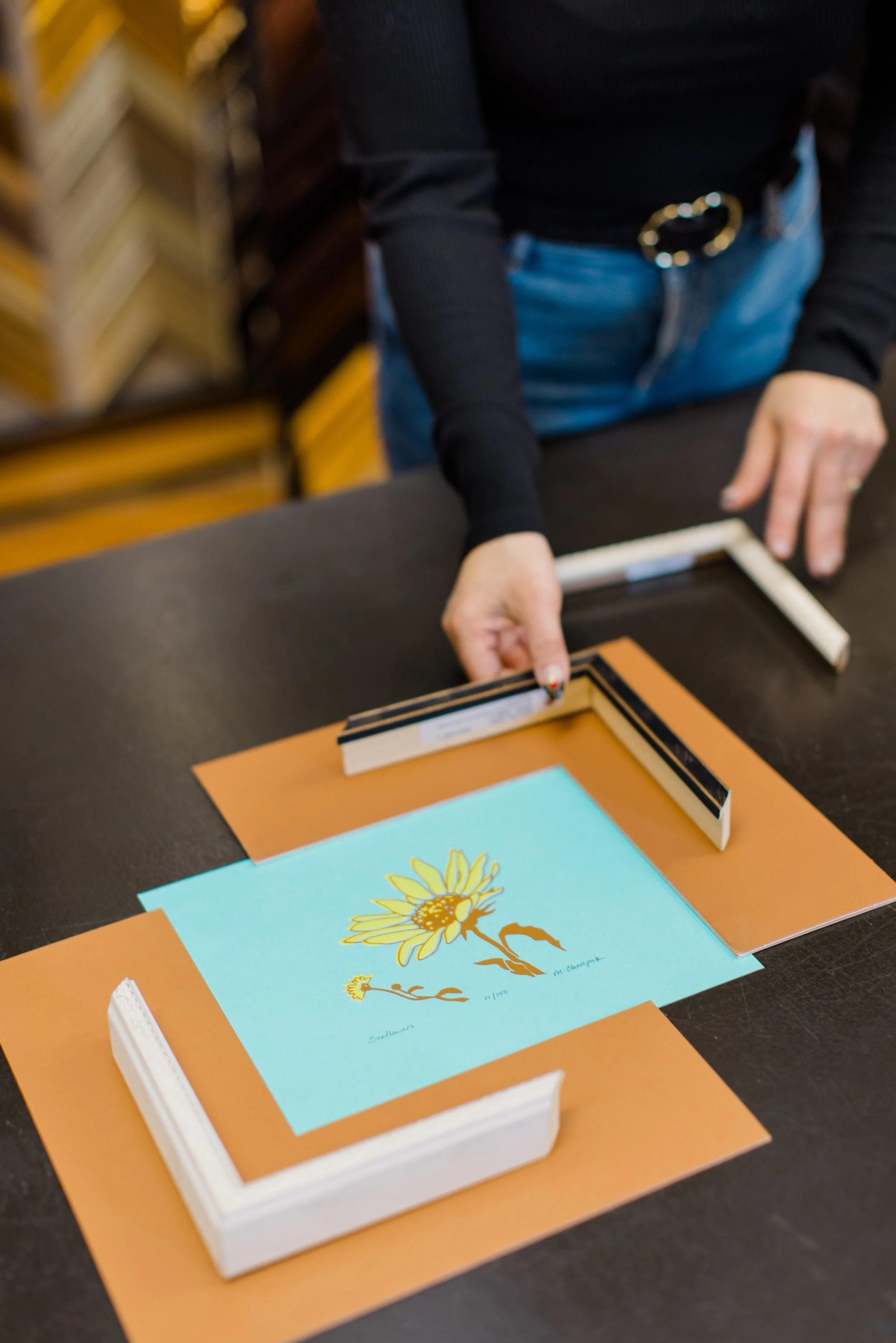 We are committed to highlighting your special piece, and an experienced staff member will help you choose the perfect frame to fit your piece’s story.